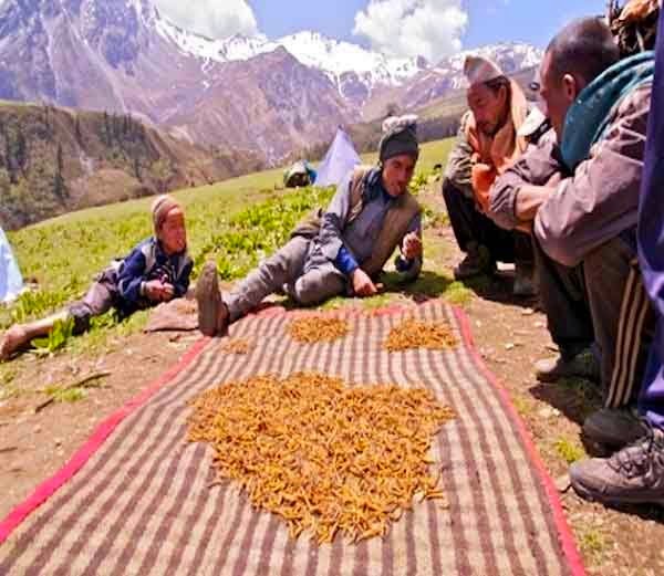 * मई - जून में नेपाल में यार्सागुम्बा को इकठ्ठा करने की होड़ मच जाती है और गाँव के गाँव खाली हो जाते है। लोग पहाड़ों पर ही टेंट लगाकर रहते है और इसे इकठ्ठा करते है। यार्सागुम्बा को इकठ्ठा करना नेपाली लोगों के लिए काफी फायदे का सौदा है इससे वो 2500 रुपए प्रतिदिन तक कमा लेते है। हालांकि लोगो को इसे यार्सागुम्बा सोसायटी को बेचने के लिए ही पाबन्द किया जाता है पर कुछ लोग ज्यादा मुनाफे के लालच में इसे तस्करों को भी बेच देते है क्योंकि सेक्स पॉवर बढ़ाने के गुण के कारण इसकी विदेशों खासकर चीन में काफी मांग रहती है। अंतर्राष्ट्रीय बाज़ार में इसकी कीमत लगभग 60 लाख रुपए प्रति किलो है।