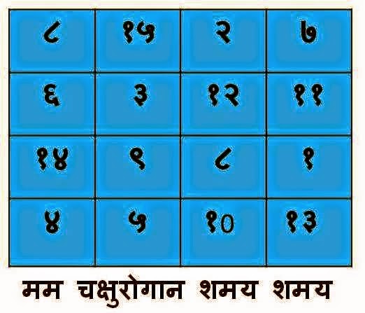 " ॐ चक्षुः चक्षुः चक्षुः तेजः स्थिरो भव। मां पाहि पाहि। त्वरितम् चक्षुरोगान शमय शमय। मम जातरूपम् तेजो दर्शय दर्शय। यथाहम अन्धो न स्यां कल्पय कल्पय। कल्याणम कुरु कुरु। यानि मम पूर्वजन्मोपार्जितानी चक्षुः प्रतिरोधकदुष्क्रतानि सर्वाणि निर्मूलय निर्मूलय। ॐ नमः चक्षुस्तेजोदात्रे दिव्याय भास्कराय। ॐ नमः करुणाकरायामृताय। ॐ नमः सूर्याय। ॐ नमो भगवते सूर्यायाक्षितेजसे नमः। खेचराय नमः। महते नमः। रजसे नमः। तमसे नमः। असतो मां सदगमय। तमसो मां ज्योतिर्गमय। मृत्योर्मा अमृतं गमय। उष्णो भगवाञ्छुचिरूपः। हंसो भगवान शुचिरप्रतिरूपः। य इमां चक्षुष्मतिविद्यां ब्राह्मणो नित्यमधीते न तस्याक्षिरोगो भवति। न तस्य कुल अन्धो भवति। अष्टौ ब्राह्मणान ग्राहयित्वा विद्यासिद्धिर्भवति। "